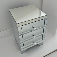 3 서랍 유리 침대 옆 탁자와 구운 곡선 거울 스탠드 서랍장 침실 가구 실버 대한 작은 공간